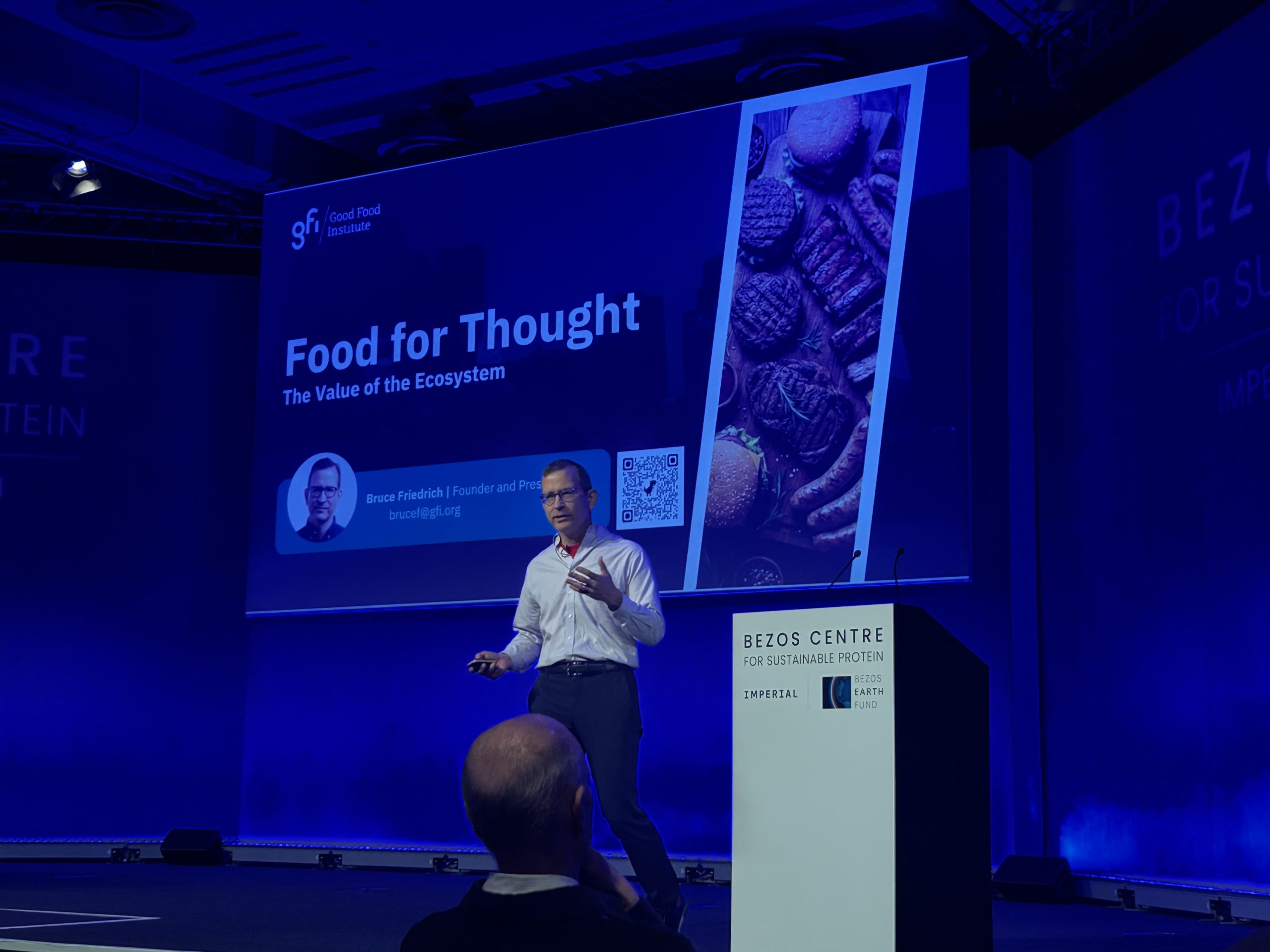In his keynote, GFI President Bruce Friedrich told the Bezos Centre for Sustainable Protein 2026 Conference that meat demand will rise unless alternative proteins reach price and taste parity. Bruce Friedrich, President of the Good Food Institute (GFI) and author of Meat, giving his keynotes speech at the Bezos Centre for Sustainable Proteins 2026 Conference. …