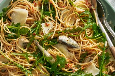 With a golden broth, creamy chickpeas and bouncy angel hair noodles, this quick vegan soup will remind you of chicken noodle soup. To create a savory broth, sizzle carrots, celery and onion with nutritional yeast, turmeric and herbs in oil. A generous amount of oil adds silkiness to the broth and helps carry the flavor of the aromatics, while nutritional yeast gives the broth the soul-satisfying properties of chicken bouillon. While you can use broken pieces of any long noodle, angel hair is especially wonderful; delicate, soft and highly slurpable, they mimic the fine egg noodles found in many delis’ chicken noodle soup.