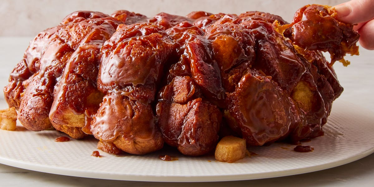 I recommend serving this monkey bread immediately—the dough is best when hot. If you do have leftovers, save them in an airtight container at room temperature for up to 3 days. To bring them back to life, I recommend placing them on a sheet tray in a 350° oven for about 10 minutes to warm the bread through.