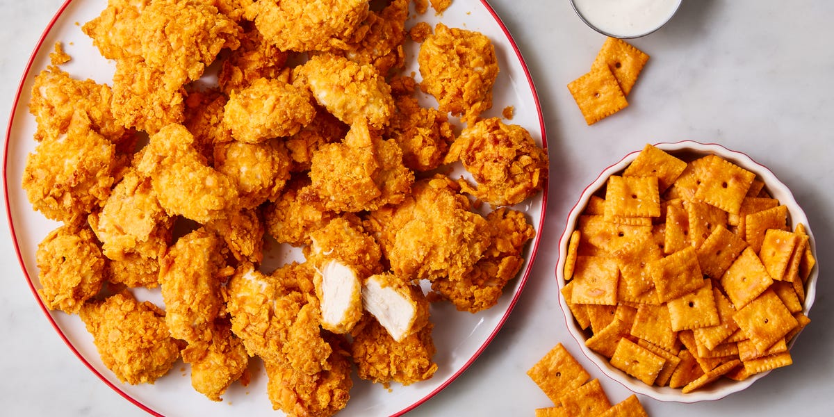 Cheez-Its are a classic snack beloved by adults and kids alike. I love them so much, I’m using them as breading here for another snack fave—chicken nuggets. These crunchy, cheesy crackers turn basic chicken nuggets into a fun (and ridiculously flavorful) meal that everyone will love. If you struggle with getting your kids to eat something with a bit of heft (or if you want to satisfy your inner child after a long week), this cheesy crusted chicken is the recipe for you. Heads up: it’s also great for game day, and wouldn’t be unwelcome on a holiday appetizer spread either!