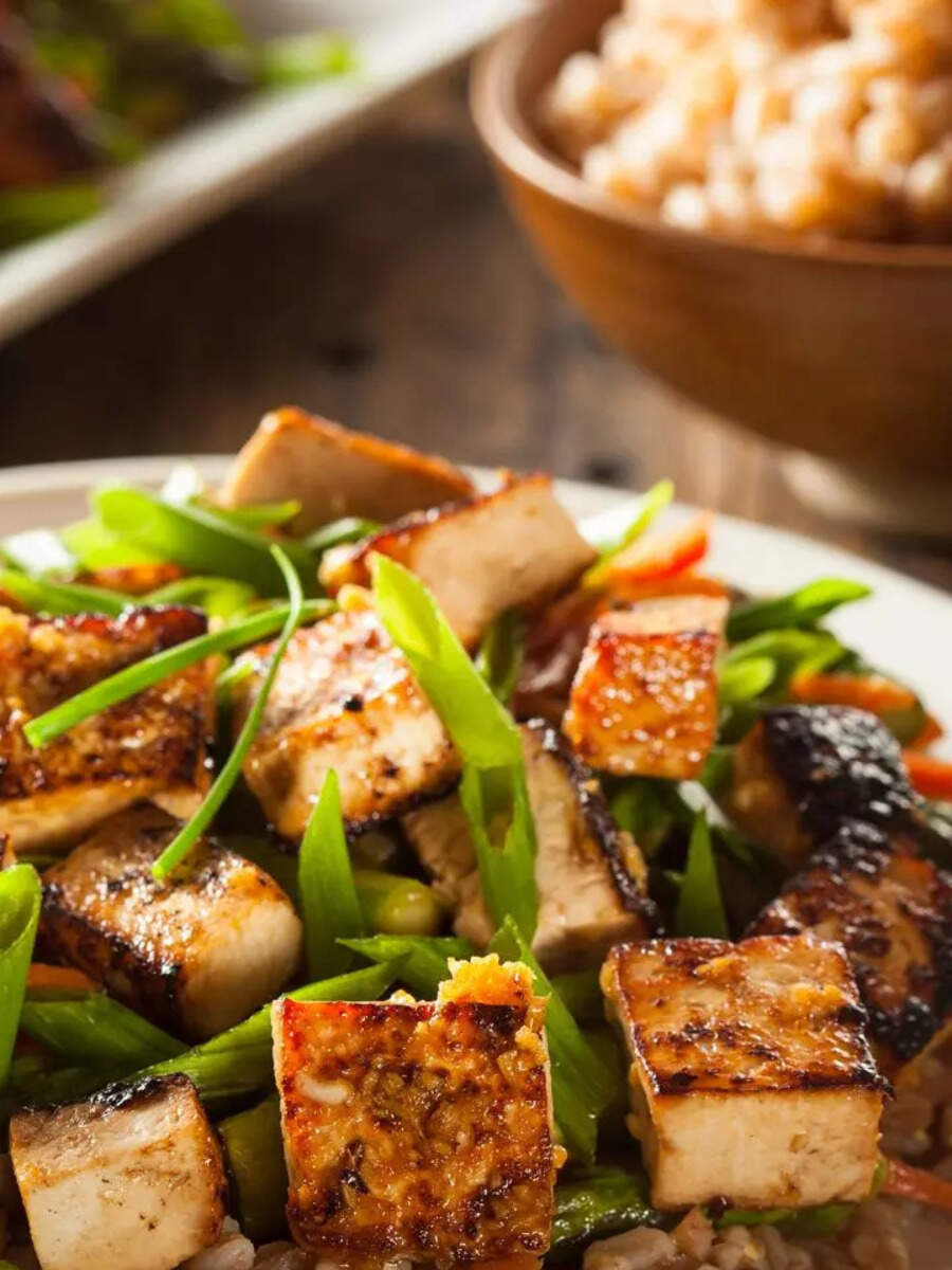 1 cup cooked rice, 200 g tofu, 1 tbsp olive oil, 1 large onion, 1 cup mixed veggies, 2-3 garlic cloves, 1 tbsp ginger garlic paste, 2 tbsp soy sauce, 1 tsp chili flakes, 1 tsp turmeric powder, 1 cup black beans,1/2 tsp cumin powder, 1/2 tsp coriander powder, salt, and pepper.