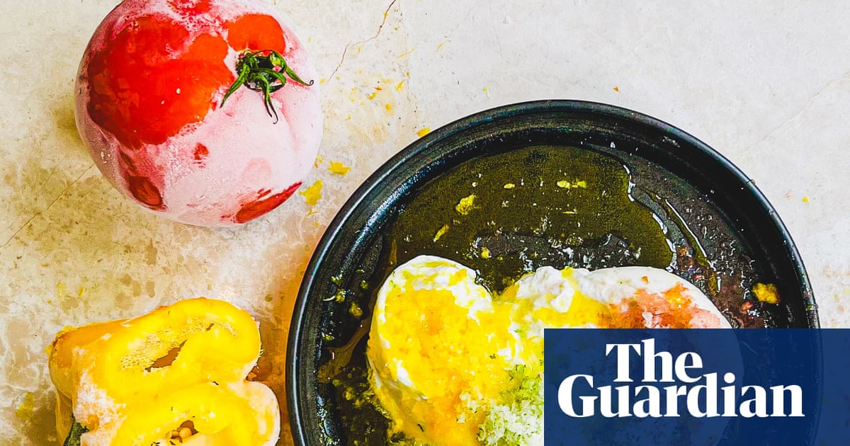 One fruit or vegetable is plenty for this, and will stand-alone if you want to create a simple dish, but if you have other ingredients that will work well, by all means go for it. I wanted a Neapolitan-style tricolore granita on my burrata, but ended with more of a Jamaican flag because I had only a green cucumber end, a red beef tomato and a yellow pepper spare. Other good seasonal combinations are beetroot, balsamic and dill, carrot; fennel, aleppo pepper and orange juice; and fig, balsamic and black pepper.