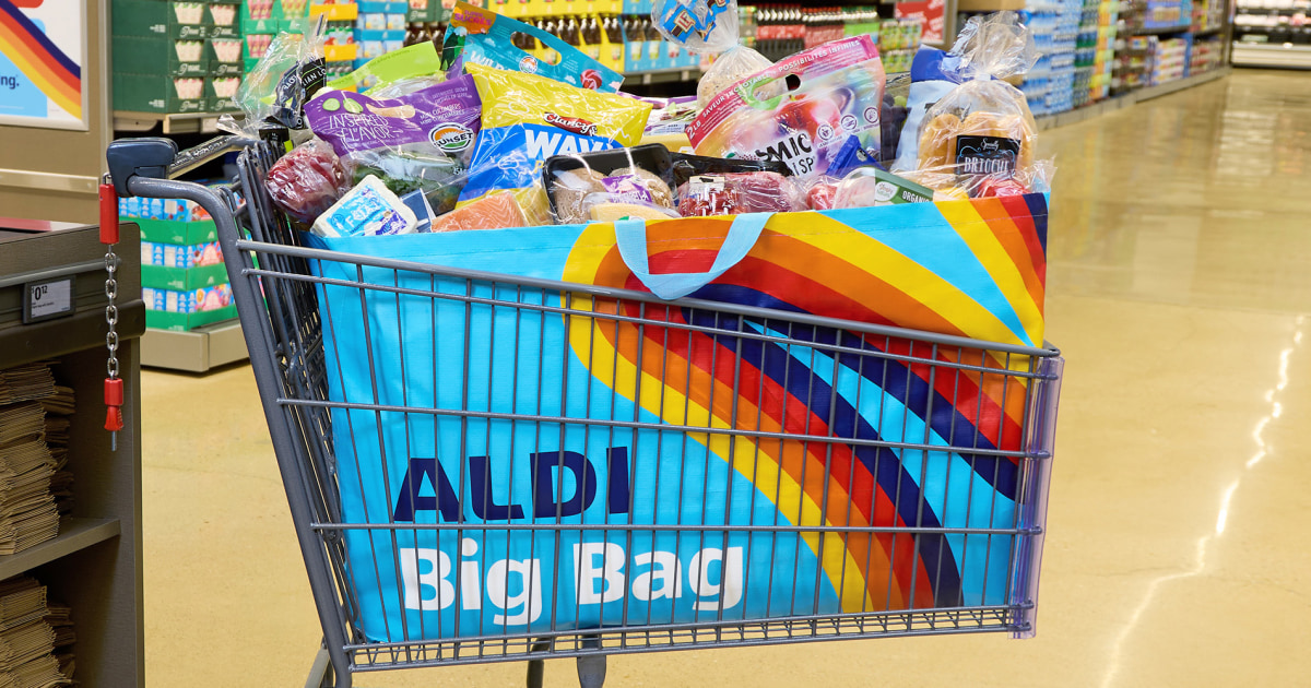 “Each bag is a metaphor for massive savings… because bigger savings mean bigger hauls, and bigger hauls mean you need a bigger bag. Those viral mini totes? Cute, but they could never,” Aldi said in a news release on Sept. 9.