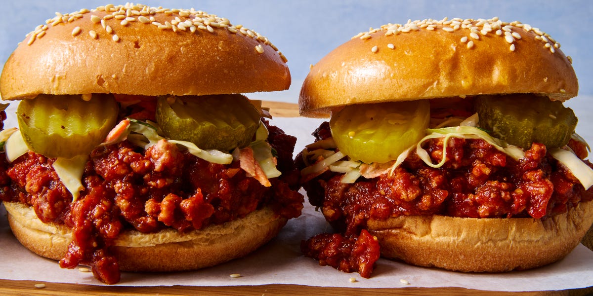The humble sloppy Joe doesn’t have to be a painful school cafeteria memory. I found a way to upgrade it from lunchtime loser to weeknight winner with just the right combination of fresh and pre-made ingredients. The filling starts with an aromatic base of onions, bell peppers, jalapenos, and garlic, which get cooked with ground chicken, making this a little bit lighter than the ground beef-based OG. After a quick simmer in a blend of crushed tomatoes and Kansas City-style BBQ sauce, the sloppy Joe mix is ready to be piled onto a toasted bun and topped with a creamy, tangy coleslaw to bring balance to every bite.
