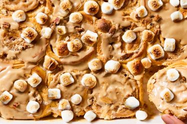 If you want to make these blondies the day before you’re planning to serve them, they can be stored in the baking dish, tightly wrapped in plastic wrap. In that case, I recommend waiting to glaze them until the day you’re planning to cut and serve them. Once glazed and cut, these blondies can be stored in an airtight container at room temperature for 3 to 5 days. They can also be frozen for up to 1 month.
