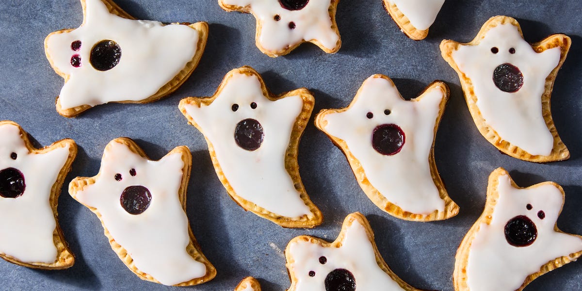 Trick or treating is great when you’re a kid, and a guaranteed sugar rush outweighs the social anxiety of asking a stranger for candy, but as an adult, you realize there are better ways to get sweet treats on Halloween, completely from the comfort of your own home. These adorable bites are inspired by TheLittleBlogOfVegan on TikTok, though my version is not vegan. I used store-bought blueberry jam and store-bought pie dough to make this recipe as user-friendly as possible (but if you’re ambitious, make your own!). All you have to do is cut them out, fill them up, crimp them together, and voilà—you have the most delicious sweet treat to wow your friends.