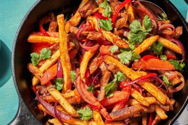 Stir in the tomato paste and aleppo pepper, cook for four to five minutes, then tip the beans and their water into the pot. Cook for 10 minutes, then crumble in the stock cube and add the tahini, black pepper and 600ml boiling water. Mix well, turn down the heat to a simmer and leave to bubble away gently for 10 minutes. Add the lemon juice, cook for a further five minutes, then take off the heat.