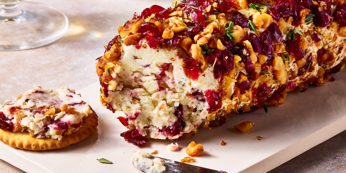 It’s hard to find a party appetizer that’s more beloved than a cheese log—or its alternate form, the cheese ball. Salty, crunchy, and sometimes sweet, this pre-dinner treat is easy and infinitely adaptable for any season and occasion. Here, dried sweetened cranberries, walnuts, and fresh thyme conjure a holiday feeling, while a little honey complements the sweet-tart fruit (feel free to swap with dried cherries for a similar vibe). Of course, this appetizer wouldn’t be what it is without cheese, and this one has three: cream cheese, sharp white cheddar, and Parmesan. The trio not only creates the perfect balance of flavors but also the ideal cheese log texture.