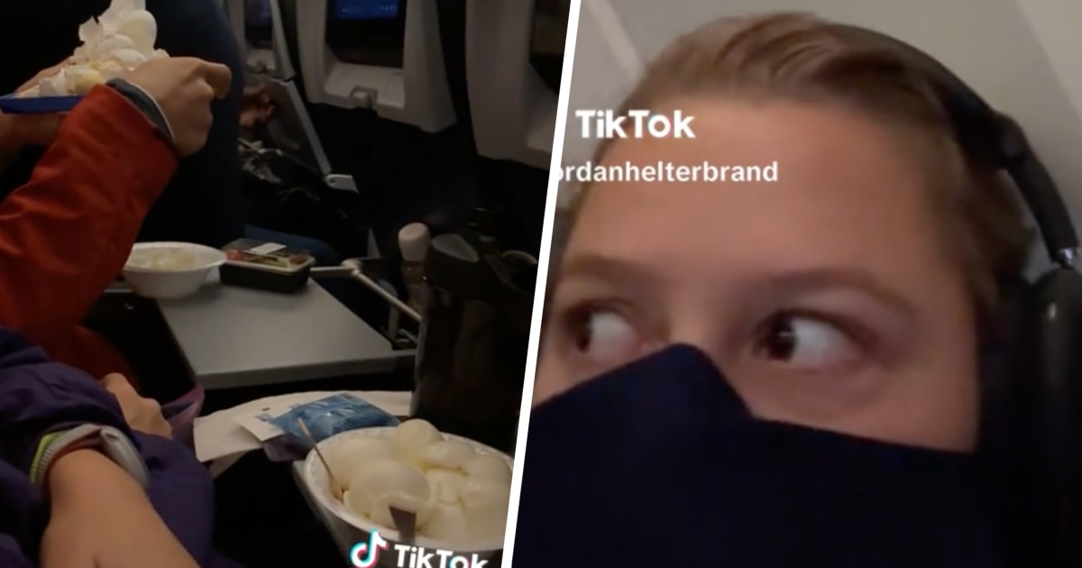 At six seconds, the video is short and not-so-sweet: Two anonymous passengers eat as the TikToker stares, shell-shocked, covering her nose.