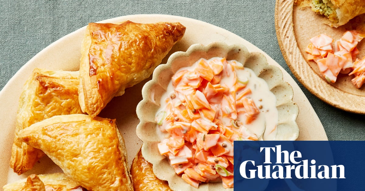Spiced paneer puffs with quick-pickled carrot raita