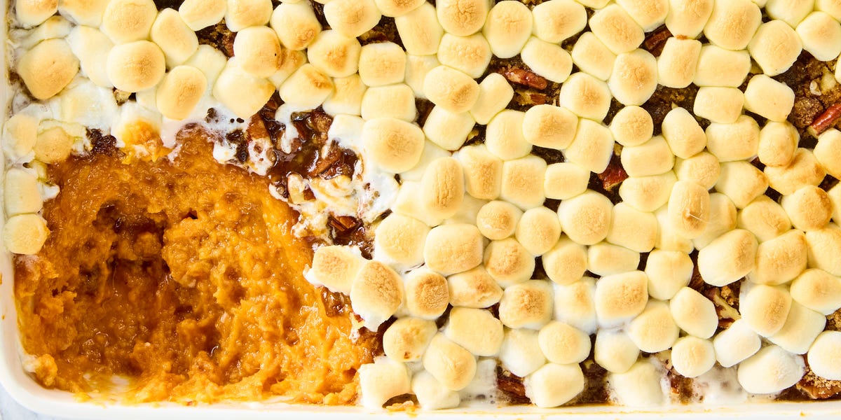 Everyone has their own must-haves for Thanksgiving, and I can respect them all, but for me, sweet potato casserole is an absolute non-negotiable. If your perfect casserole isn’t complete with a golden marshmallow topping (I feel you), then this is the recipe for you. My version of this sweet side dish offers the best of both worlds: You’ll get the crumbly, brown-sugar-pecan topping and the fluffy, toasted mini marshmallows, resulting in a perfect side that’s practically dessert. If this sounds like the Thanksgiving recipe of your dreams, then keep reading below for all of my top tips on how to ace it.