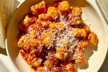 Turn down the heat under the water pan to a simmer, set the bowl over the top and vigorously whisk the boozy egg mix for about five minutes, until it turns thick and creamy – once the whisk leaves a clear trail in the egg mix, the zabaglione is ready.