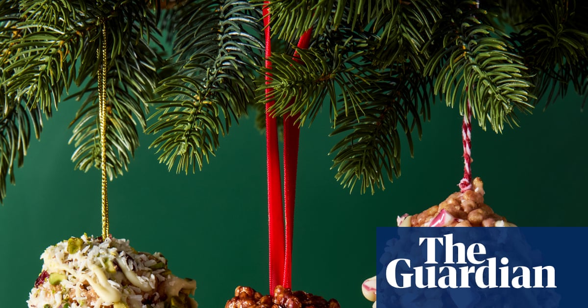 These edible baubles make a joyful addition to the Christmas table or tree. Soft, chewy, marshmallow-coated Rice Krispies are studded with pistachios and cranberries, chocolate and ginger, or peppermint candy cane; they’re as fun to make as they are to eat, and they make a perfect little gift. To add a ribbon for hanging, cut small lengths of ribbon, then loop and knot the ends. Push the knotted end gently into the top of each ball while it’s still pliable, then reshape around it, so it holds the knot securely as it sets. Alternatively, wrap each bauble in cellophane, then gather at the top and tie with a ribbon, leaving a long loop for hanging.