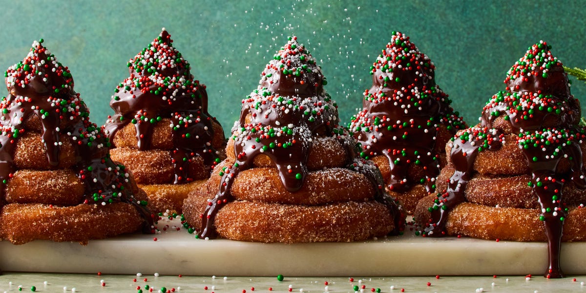 When you hear “Christmas tree churros,” you might think—are you fir real? Well, yes, yes I am. Frying churros into these festive little trees will be sure to lift your (holiday) spirits. To make these Christmas tree churros, I used our classic churro recipe, which is basically foolproof—if you’ve never made churros before, this is the recipe to use. Tracing out your circles and piping over them is the most logistically difficult part of this process, and once you’re done with that, all you have to do is fry them up, roll them in cinnamon sugar, and cover them in ganache and sprinkles. Make these churros to wow your guests at your next holiday party or just because you’re craving the perfect sweet treat in a new, adorable way.
