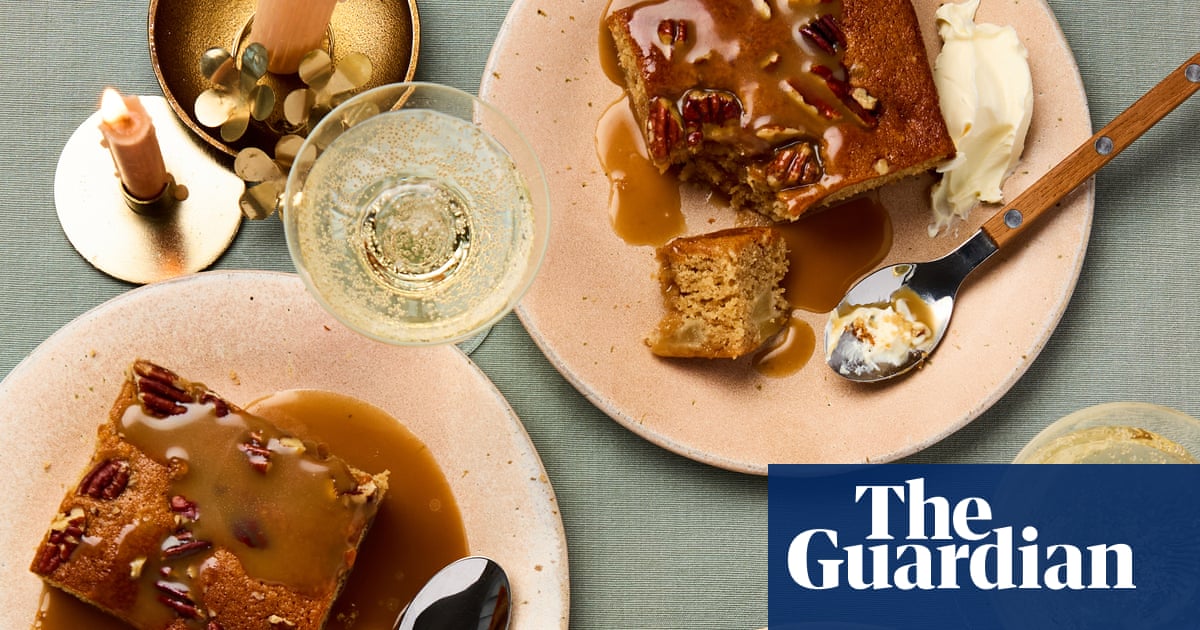 While our Christmas Day dinner doesn’t deviate too much from tradition, I do experiment with the dessert. My family, bar one sweet-toothed aunt, avoids dried fruit-based offerings, so classic Christmas cakes and puddings are a hard no. Over the years, I have tried variations on yule logs, pavlovas and sherry trifles, but the biggest crowdpleaser is easily sticky toffee pudding (or something along those lines). This year, I’m making this warming, simple but decadent pear, sticky ginger and pecan pudding, which feels festive and fancy, and can happily make an appearance whenever.