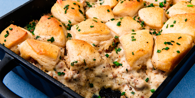 Hot take: No brunch dish is better than biscuits and gravy, and this is the perfect way to serve them to a crowd. An extra-thick layer of sausage gravy with lots of black pepper makes this bake absolutely perfect. Plus, I’m using a shortcut store-bought refrigerated biscuits to make this casserole easier than ever. If you’re also obsessed with biscuits and gravy but are looking for a quick, easy, and shareable way to serve this classic Southern breakfast dish, then turn to this casserole—trust me, you won’t be disappointed.
