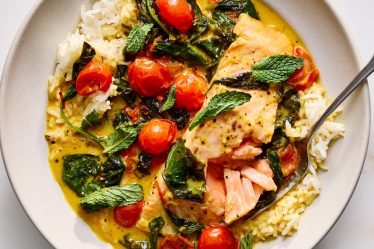 I don’t usually make comments, as I typically make recipes as printed, but now–having departed from the recipe and omitted the 8 teaspoons of cumin entirely from the xawaash mixture, I would like to crown my cumin-free rendition of Malaay Qumbe an enormous, self-judged success. (Should I say it went over swimmingly with my friends and family? Does anyone fact-check these claims?) Next time beef for the fish, Yoo-Hoo for coconut milk, and it’ll be 5 stars indeed.