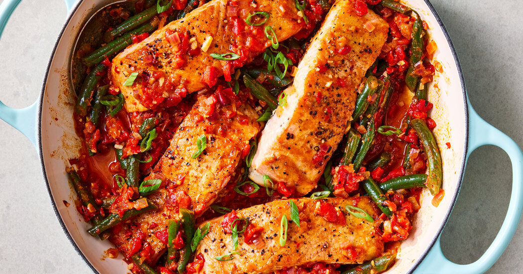 Turn the heat down to medium-high, add 1 tablespoon oil to the skillet, the green beans, anchovies and miso. Cook, stirring frequently, mashing the anchovies with the spatula until miso is broken up and anchovies are dissolved. Add ½ cup water to the skillet and bring to a simmer. Cook until green beans are just wrinkly, 4 to 6 minutes.