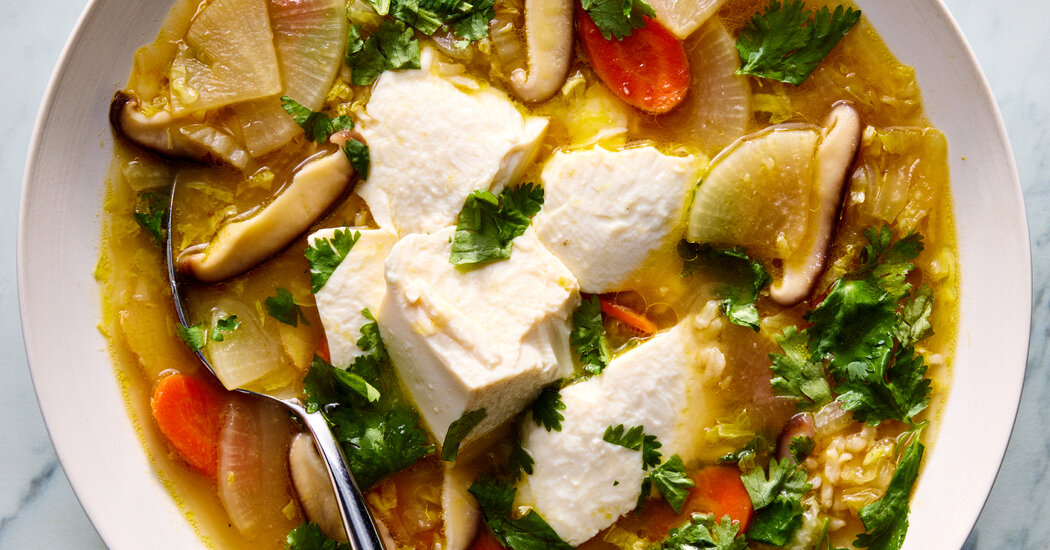 This soup — which embraces the ethos of cucina povera to use a multitude of vegetables to create a filling meal — is chunky with cabbage, carrots and daikon radish, but also tender and refreshing with bites of silken tofu all in a warming, gingery broth. Chopped cilantro adds a citrusy brightness, although basil or dill are great too. You could use bok choy instead of cabbage, and if you want some heat, try stirring in a serrano chile along with the garlic and ginger.