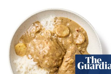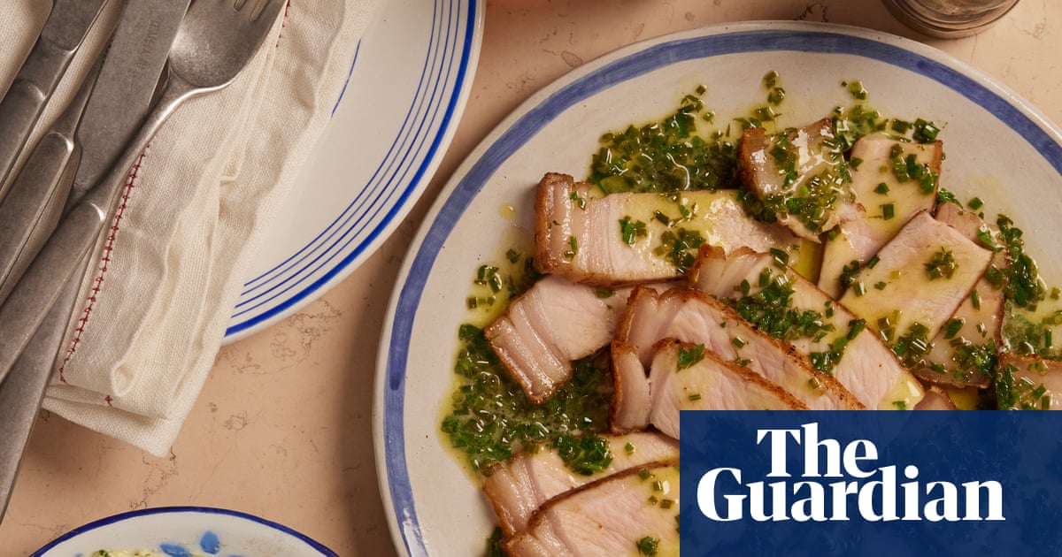 Transfer the pork to a rack set over a tray, then transfer to the oven for 10 minutes. Do not wash out the pan: you want the fat and the caramelised bits in there. After 10 minutes, return the pork to the hot pan for a quick second sear on both sides, then return it to the rack and the oven for another 10 minutes: you’re aiming for a core temperature of 60C.