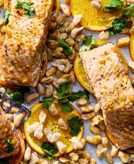Sheet-Pan Citrus Salmon With White Beans Recipe