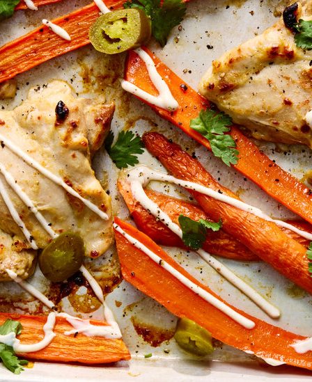 Sheet-Pan Chicken and Carrots With Yogurt Sauce Recipe