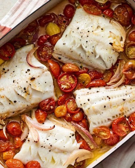 One-Pan Roasted Fish With Cherry Tomatoes Recipe