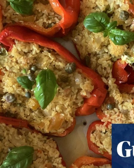 Rachel Roddy’s recipe for red peppers stuffed with orzo, tuna, capers and herbs | Italian food and drink