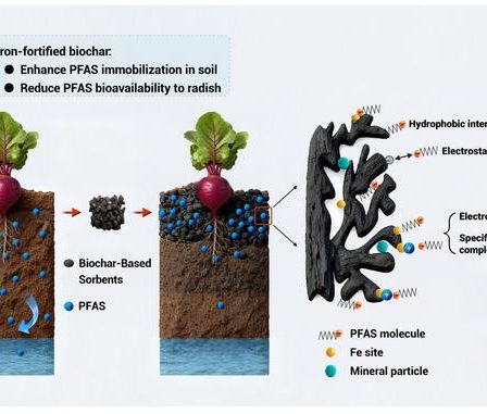 New study finds iron-fortified hemp biochar sharply reduces PFAS forever chemicals entering radishes from contaminated soil, offering food producers a promising mitigation tool. Iron-fortified hemp-derived biochar reduces per- and poly-fluoroalkyl substances bioaccumulation in radish (Raphanus sativus L.) Credit: Trung Huu Bui, Mandeep Kaur, Nubia Zuverza-Mena, Sara L. Nason, Christian O. Dimkpa, Jasmine P. Jones & …
