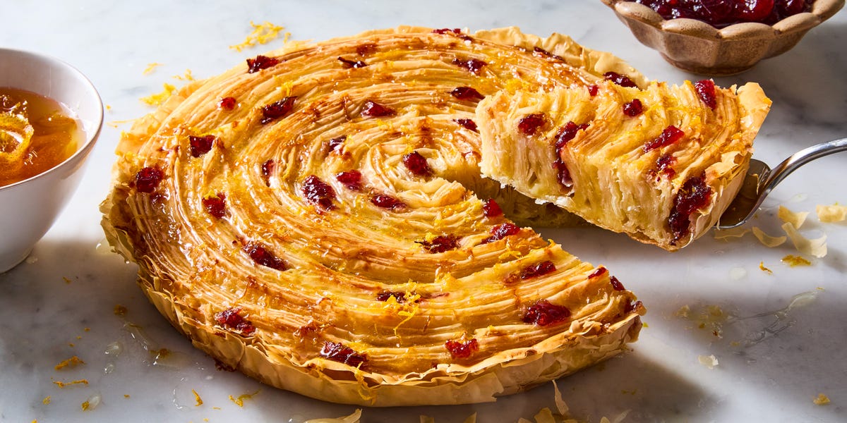 If you want to impress your family and friends with a showstopping dessert this holiday season, look no further than this cranberry crinkle tart. Golden layers of crispy phyllo pastry are soaked with sweet orange custard, filled with cranberry sauce, and brushed with a glistening simple syrup for a stunning dessert centerpiece that’s as beautiful …